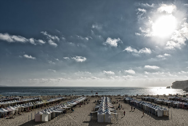 Uno dei posti che io personalmente ho apprezzato veramente tanto è stato Nazarè: ormai conosciuta come la spiaggia dei surfisti, questo luogo ha un che di magico che ti attira, a partire dalla spiaggia (e io di spiagge meno ne vedo meglio è... ehehehehehehe) che è una immensa distesa di sabbia con una sola parte adibita a stabilimento balneare, ma Nazarè è anche una cittadina piena di vita che ad ogni angolo trovi signore sedute con un cartello seduto che ti invitano ad affittare camere o appartamenti, le salite ripide che ti portano nel cuore dei vicoli più caratteristici e in ultimo la parte alta quella da cui si domina il paese. Insomma una scoperta che voglio condividere con chi non conosce questo posto.
